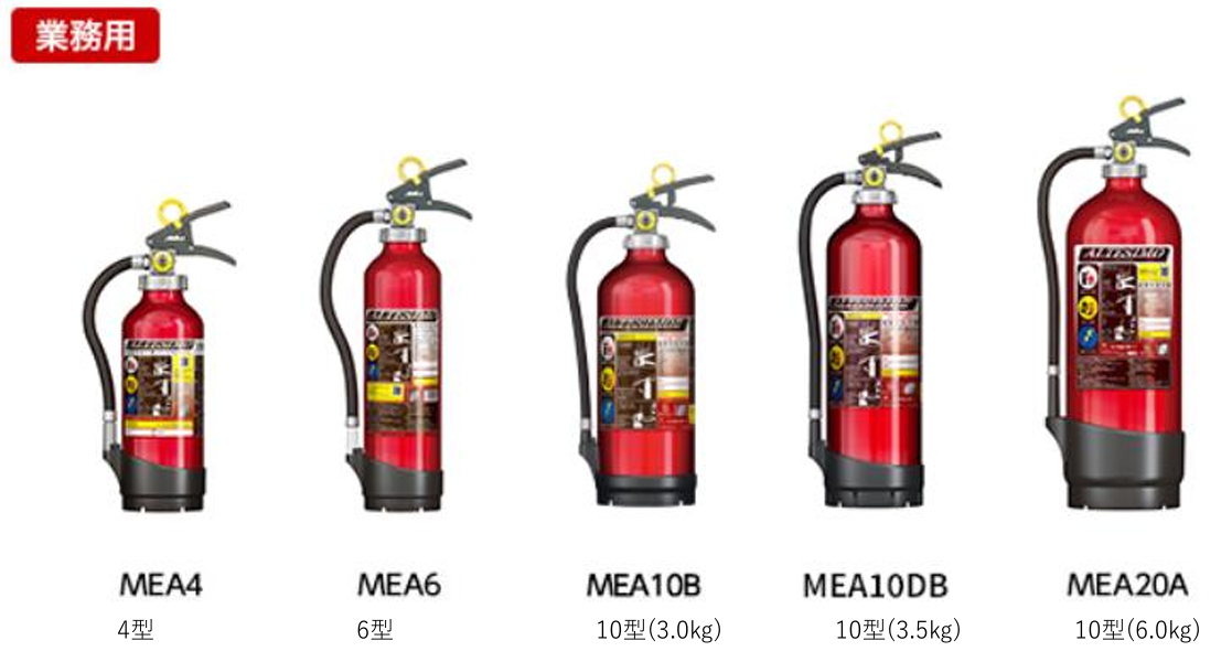 火災発生時の初期消火に活躍する多種多様の消火器を取り揃えています。