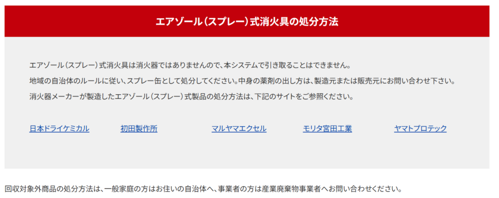 ※リサイクル処分出来ない物品があります。下記の「消火器リサイクル処分できないもの」を参照してください。